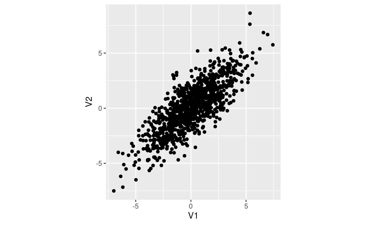 df <- MASS::mvrnorm(n=1000, mu=c(0, 0), Sigma=Sigma) %>% as_tibble()
